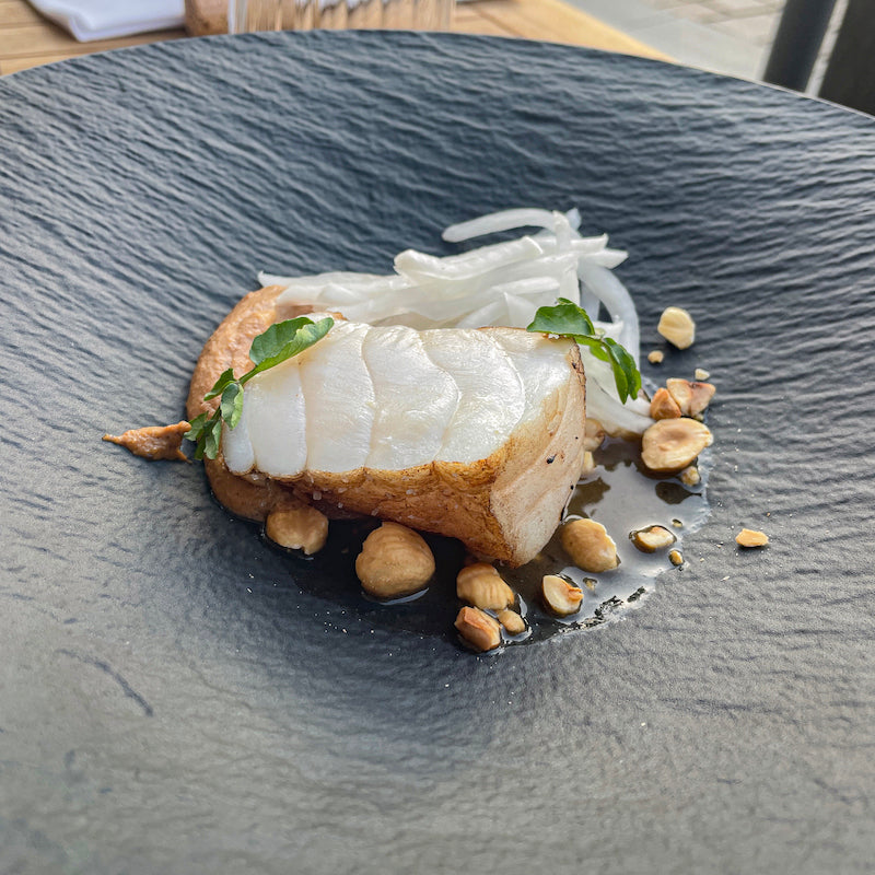 Bretonischer Seeteufel petit bateau, Rettich, Haselnuss, Brunnenkresse