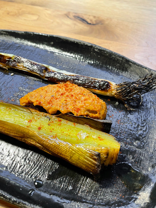 Verbrannter Lauch mit Romesco-Soße. 100% Katalonien.