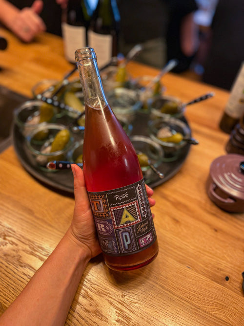 Unfiltrierter Rosé von Johannes Trapl zu Schmalz und Wurzelbrot.
