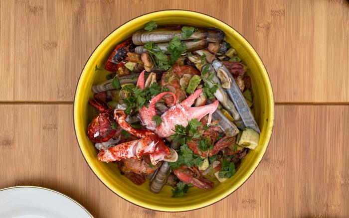Als wir im August 2021 ein ruhiges Fischerdorf in Asturien entdeckten, stießen wir auf einen belebten Fischhändler mit beeindruckender Auswahl. Wir entschieden uns für Riesengarnelen, einen europäischen Hummer, Stabmuscheln, Pulpo und Calamaretti, um damit einen frischen und lauwarmen Meeresfrüchtesalat auf der Plancha zuzubereiten.