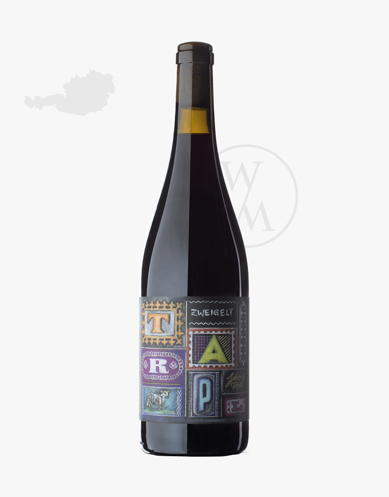 Das Demeter zertifizierte Weingut von Johannes Trapl ist im Anbaugebiet Carnuntum aktiv. Im Weinberg herrscht eine natürliche Begrünung zwischen den Rebzeilen, hier und da begrüßt dich ein Schaf. Johannes legt wert auf eine gezielte Laubarbeit und die Zubereitung von Tees für die Stärkung der Reben und die Erhaltung der Artenvielfalt vor Ort. Überhaupt ist es Johannes´Traum neben den Schafen auch ein paar Kühe auf seinem Hof zu halten. Wer einen Blick auf das Etikett wirft, kommt nicht drum herum an einen Flickenteppich zu denken. Sein Zweigelt gärt spontan im Edelstahltank und wird im großen, gebrauchten Holzfass ausgebaut.
